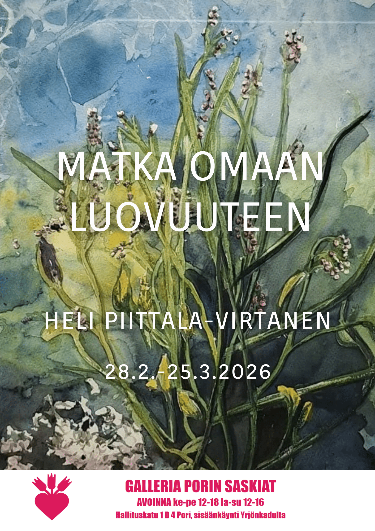 Porin Saskiat ry toimii Porista käsin koko Satakunnan alueella. Teemme yhteistyötä muun muassa Porin Taidemuseon, Porin Taiteilijaseuran, Porin Taidegraafikoiden, Porin Taide- ja taideteollisuusyhdistyksen kanssa.